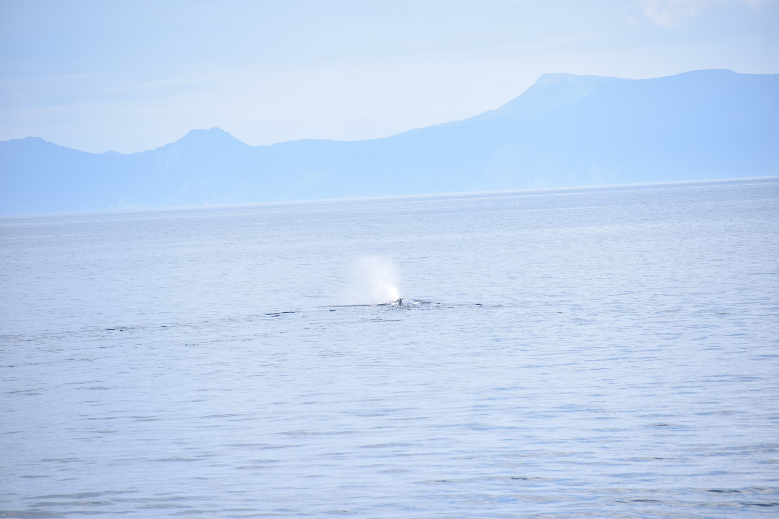 船を元に戻し、気を取り直して双眼鏡を覗くとすぐに一頭が浮上!